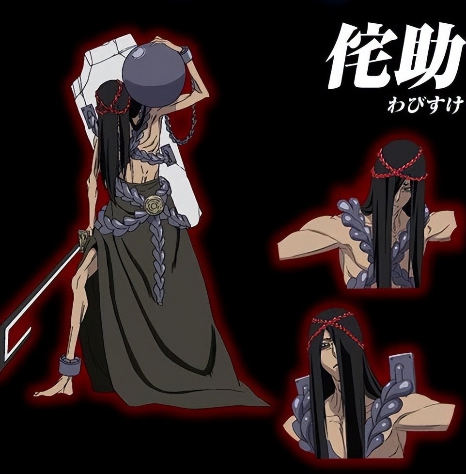 伊鹤的斩魄刀能力虽然谈不上多么的逆天,但是设定十分有趣,如果被其砍中,该部位就会被施加诅咒,变得十分沉重,而且每次攻击相同的部位,重量还会翻倍叠加,第一次是双倍、第二次是四倍以此叠加,直到对方连手也抬不起来,跪倒在地等候死期。诧助的人型化也和其能力有所呼应,是一个极其瘦弱的人,背负着一块巨大的石板和大铁球。