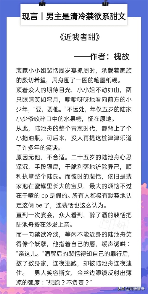 3本男主是清冷禁欲系甜文:《樱桃沙冰》话痨美人vs又冷又欲男主