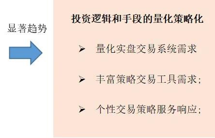 第二类:私募机构,以主动选股Alpha策略为主,并且基本没有IT研发人员,需要算法交易、篮子交易、网格交易、收益增强、批量埋单等以及有个性策略服务需求。