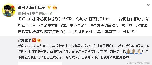 赛后魔方界大神都在微博发表了自己的看法