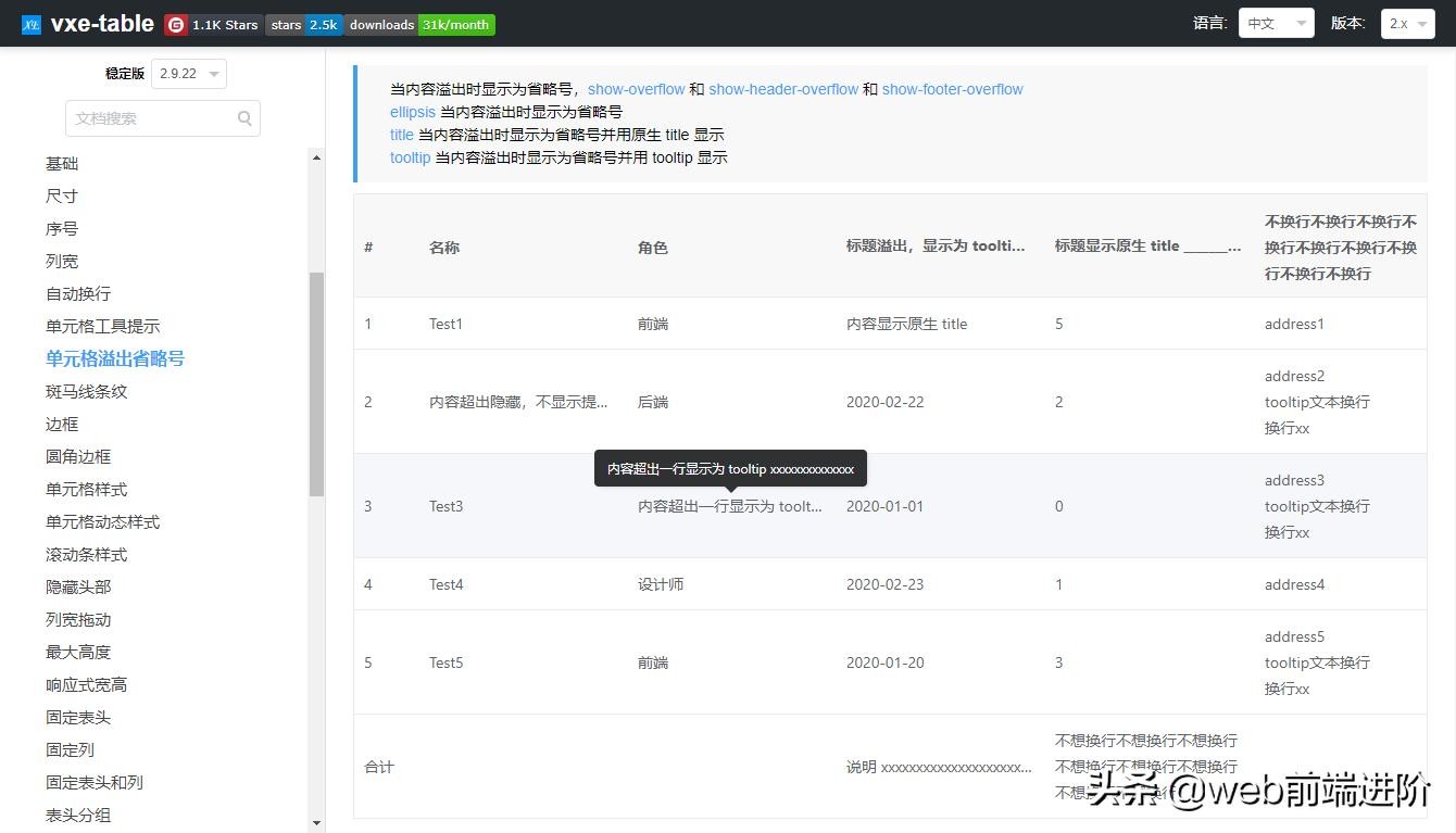 单元格工具提示+溢出省略号...