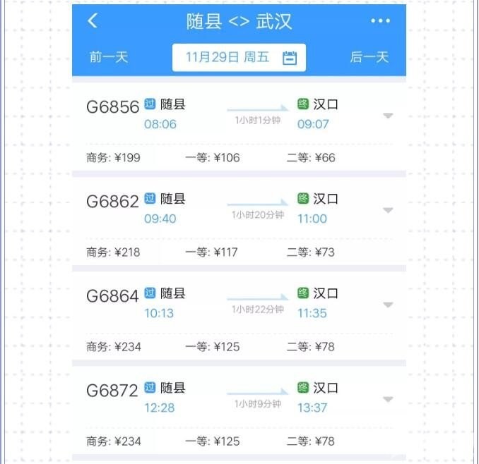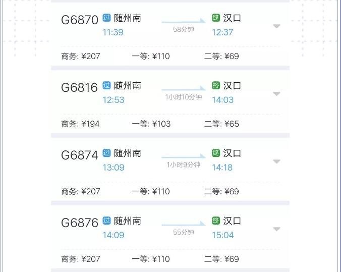 那么对于网友们关注的随州南和随县两座高铁站到武汉的车次和票价情况是怎样的呢一起来看看吧↓↓↓