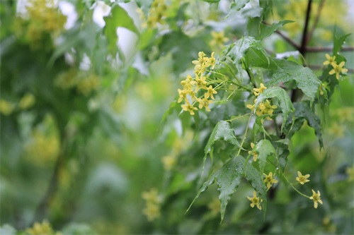 糖槭纷垂的柔梗碎花,随风飘荡,很是别致,让人耳目一新。