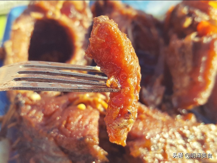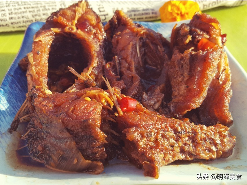 ④做好的酥鱼,在它自然冷却以后,我们可以将它放在冰箱里面冷藏,第二天酥鱼里面的汤汁会凝结成鱼冻,吃起来的口感就如同鱼罐头一样,非常的美味。