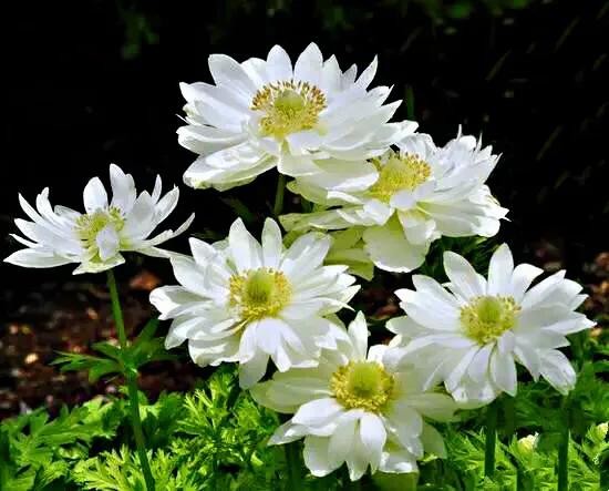 银莲花 花朵硕大,色彩艳丽丰富,有白、黄、橙、粉、红、紫各种颜色。有重瓣和半重瓣品种,花形如罂粟花一样美丽,是春秋季节优良的庭园花卉,适宜布置岩石园和花坛,也可供盆栽与切花。