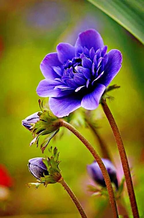 银莲花 4月份花开,五颜六色,缤纷绚丽至极,很有田园风情。尤其是蓝色重瓣植株,半开未开时极似蓝色的莲花,仙气十足,令人陶醉。