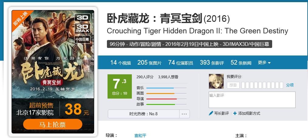 一周观影指南 《火影忍者》《卧虎藏龙2》