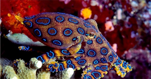 然而,当它发出耀眼的蓝光时,这便是它的警告信号,切不可被好奇心驱使而靠近。蓝环章鱼的毒素极其强大,一旦被咬,受害者会出现瞳孔扩散和呼吸急促的症状,最终心脏会完全停止跳动。