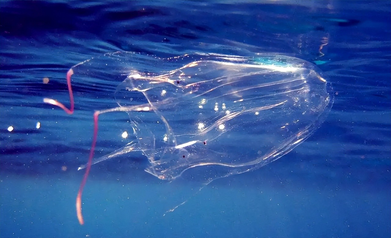 它没有心脏和大脑,身体的95%由水构成,从远处看,就像漂浮的塑料袋,看似无害,实则极度危险。当箱型水母锁定猎物时,会用触手紧紧缠绕,每根触手上大约有5000个毒液细胞。
