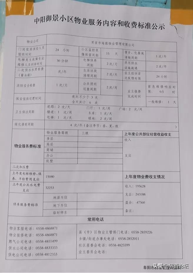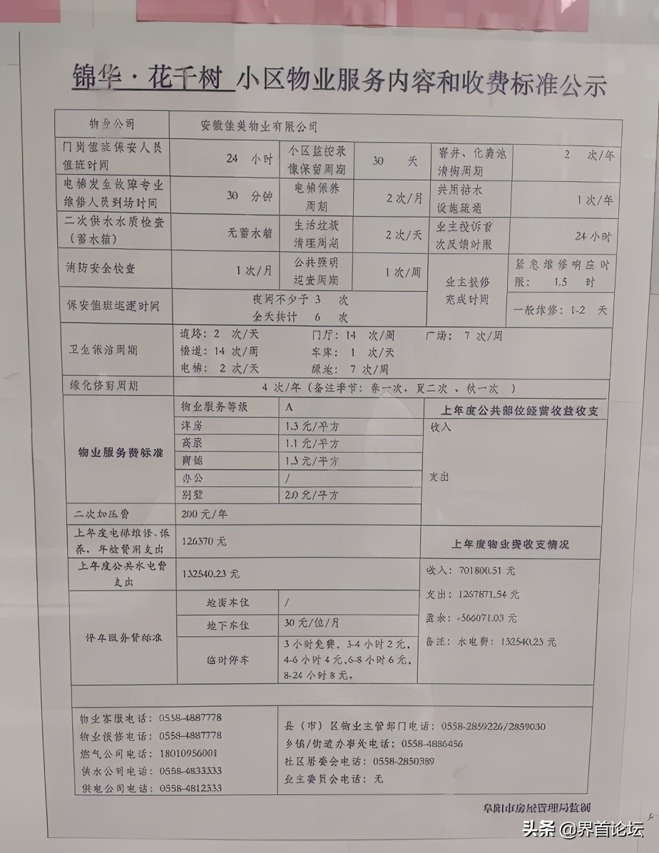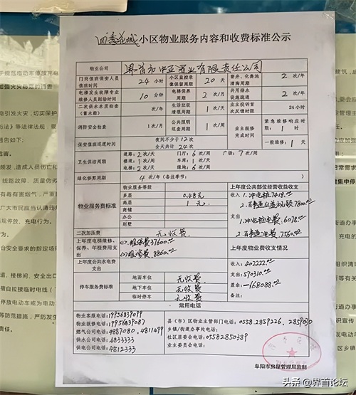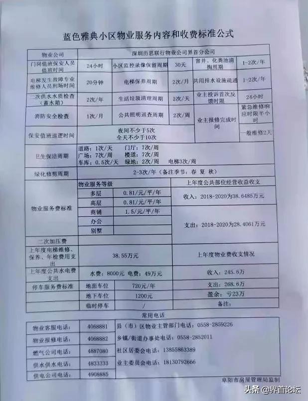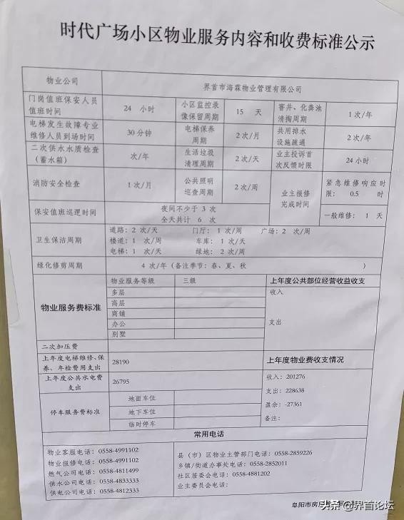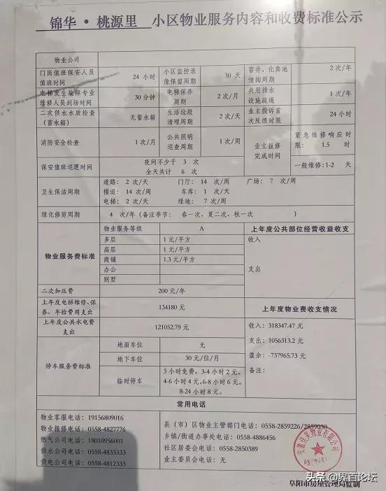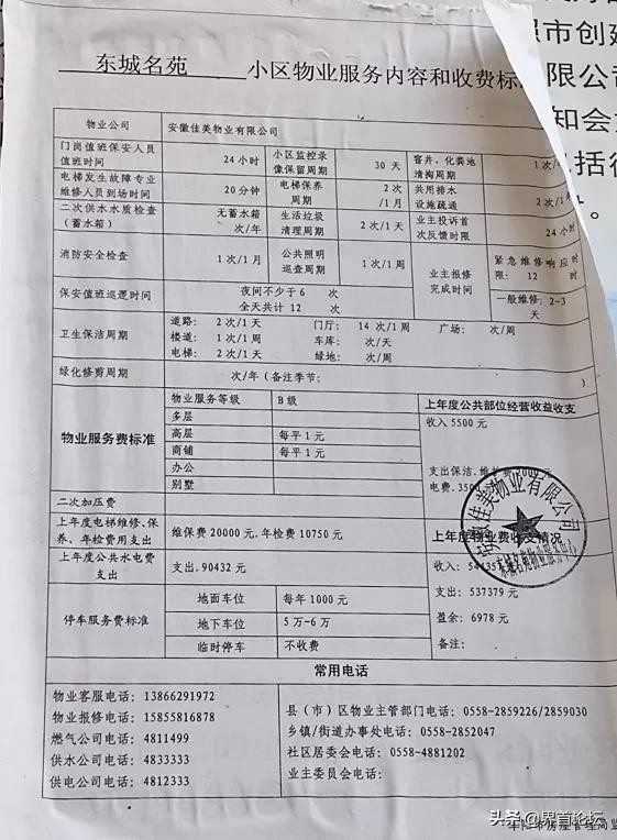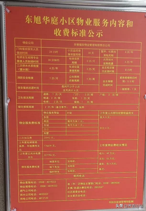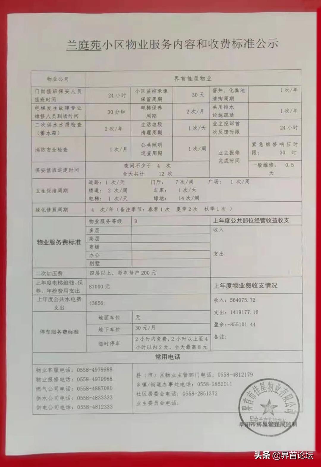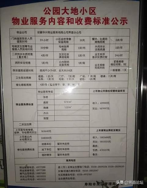 关于物业服务内容和收费标准,界首多个小区已经公示
