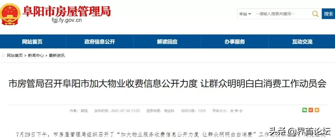 近日,阜阳市房屋管理局发布通知,要求在本月起各县区内,全面开展“加大力物业服务收费信息公开度,让群众明明白白消费”工作,对不按规定公示的物业服务企业将进行查处曝光。