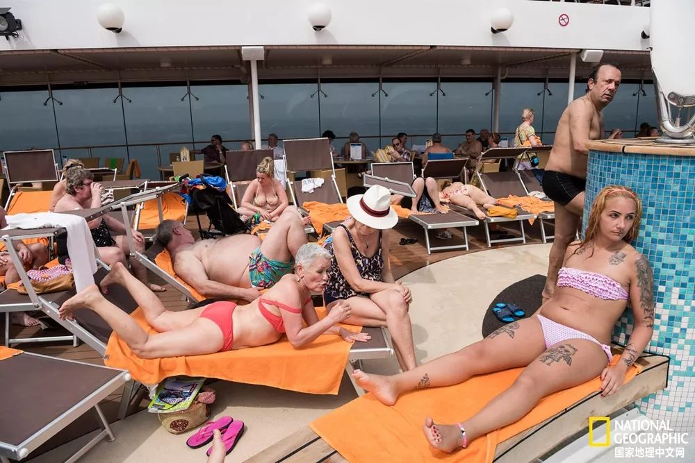 乘客们躺在音乐游艇的甲板上享受日光浴。这艘游艇将带着他们游览波斯湾和阿曼湾。