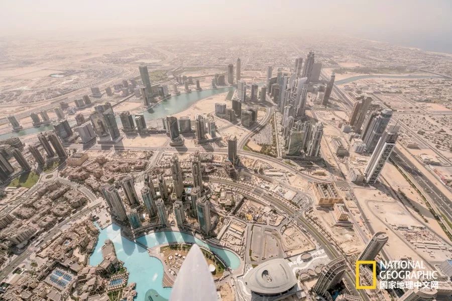 从哈利法塔顶部俯瞰迪拜