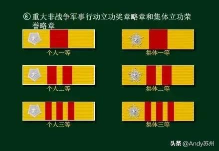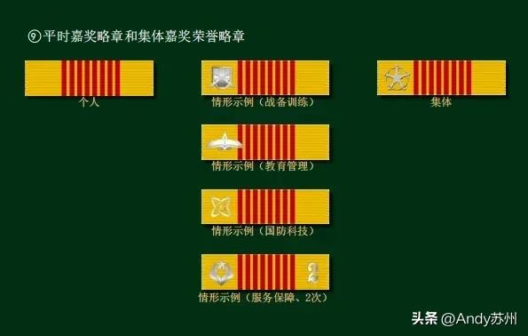 平时立功奖章,一般是通过全军或国际比武,见义勇为等获得多次获得同一勋章不可同时佩戴,只能加数字配件