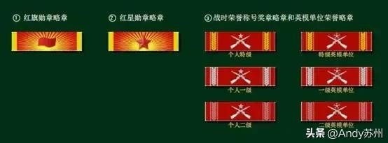 战时略章,其中就有威名显赫的特级战斗英雄略章,还有中国最高荣誉勋章:红旗勋章