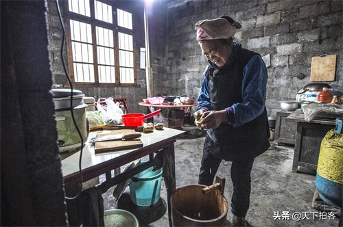 陈兹方的母亲鲁冬月,在水布垭镇鞍场村老家做家务(2018年9月16日)。