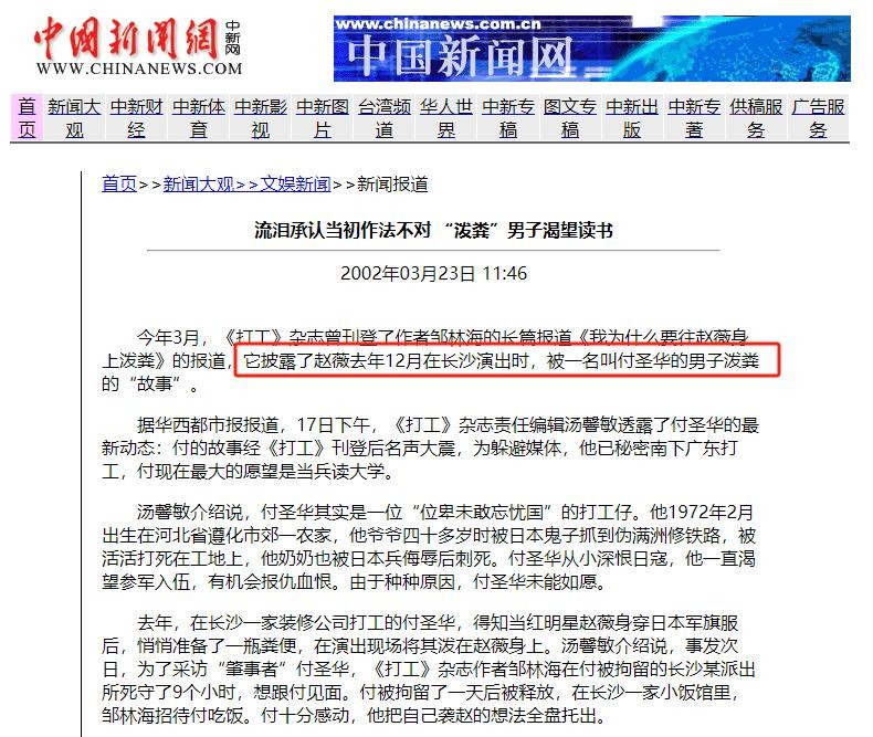 以上信息来源:中国新闻网2002年3月23日“流泪承认当初做法不对 “泼粪”男子渴望读书”