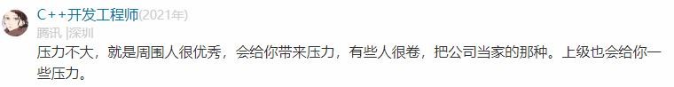 一位C++开发工程师:压力不大,就是周围人很优秀,会给你带来压力,有些人很卷,把公司当家的那种。上级也会给你一些压力。