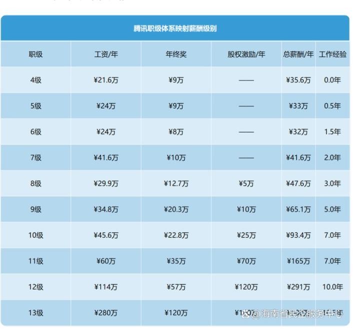 腾讯的岗位级别大概有哪些?公司的晋升机会怎么样?各个级别工资大概多少?