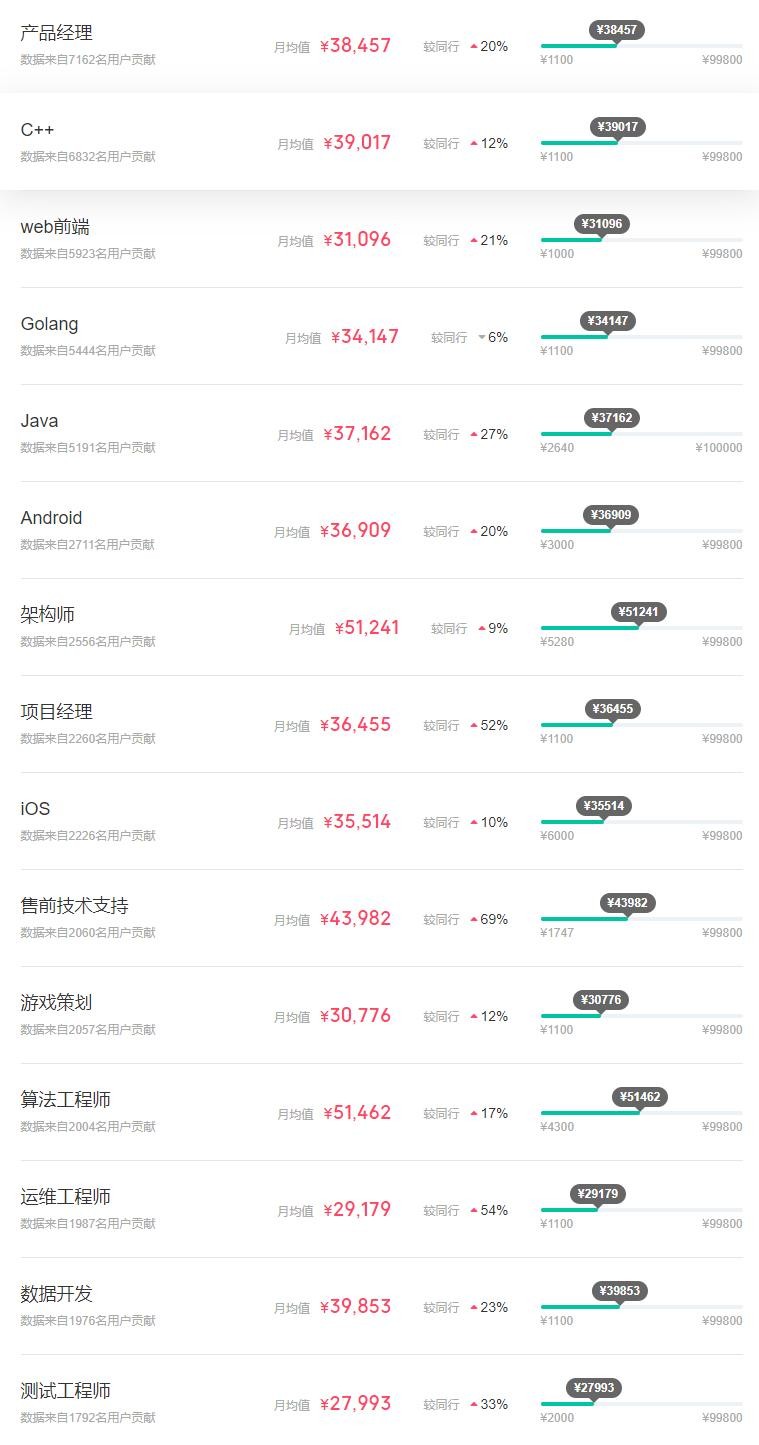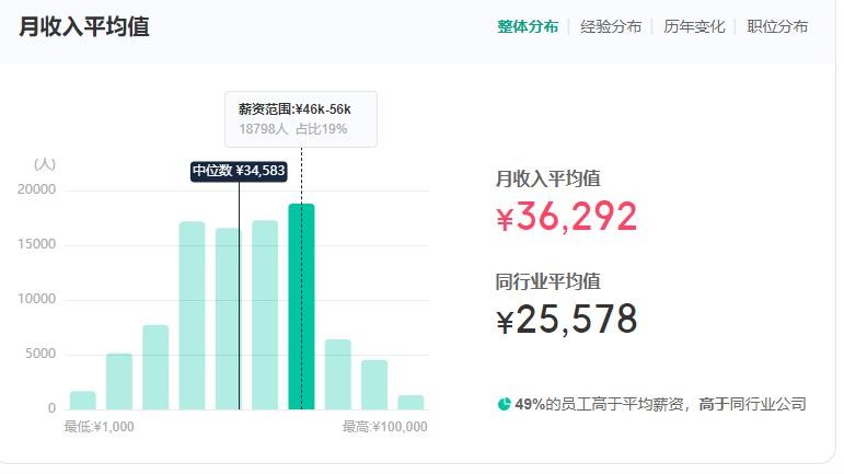 可以看到,具体岗位的平均月薪都是很高的,也远高于同行的薪资。