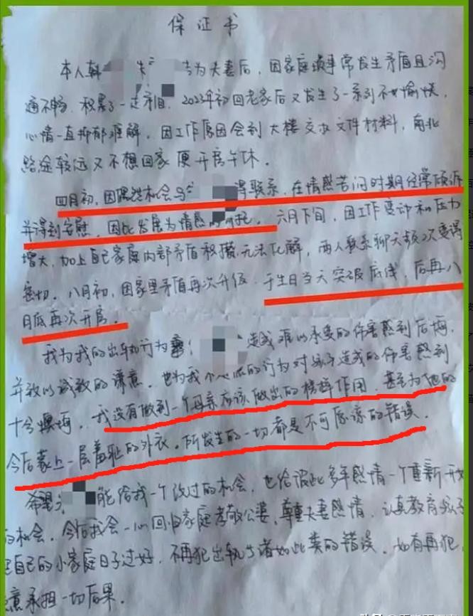 儿媳出轨的事情被儿子发现后,儿媳曾签署了一份保证书,承诺与宋某断绝关系,重归家庭。然而,后来却再次陷入了同样的错误。