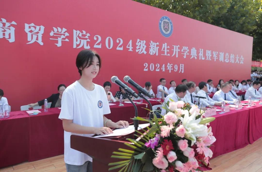 新生代表,人工智能学院的2024级新生吴博文同学分享了自己来到湖商的感受。他表示湖商是我们新的开始,亦是我们梦想起航的地方。他将牢记“梦想、行动、智慧、快乐”的校训,行于湖商,智成湖商,乐在湖商。