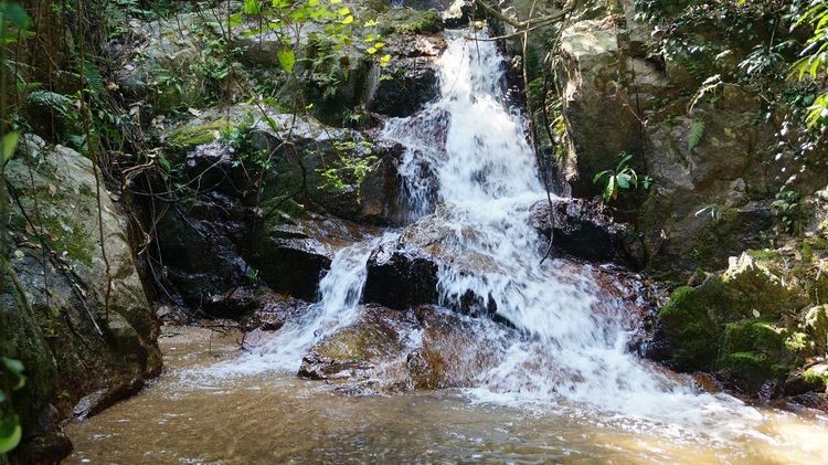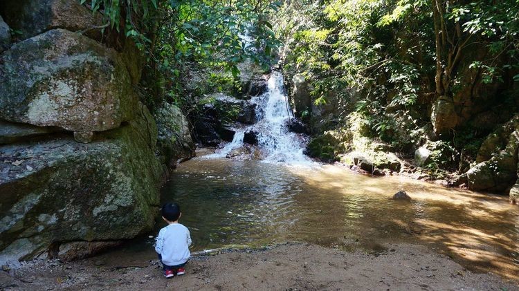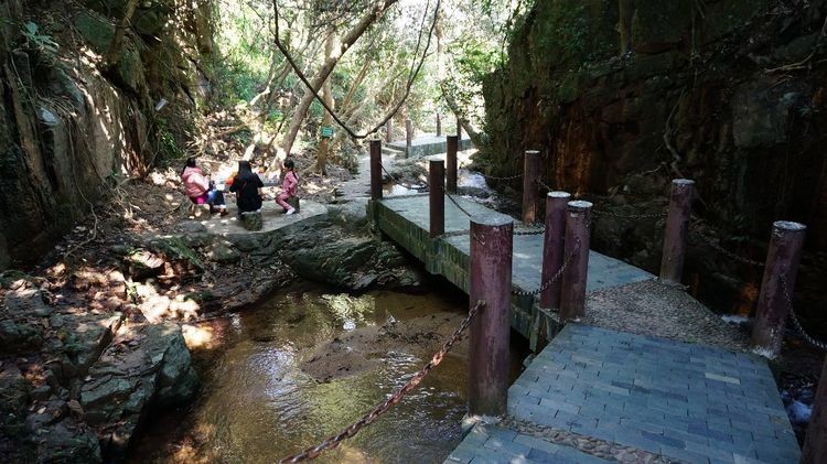 笔者最喜爱拍摄的,是阳光透过树叶映射下的溪流瀑布风光。瀑布主要集中在小羊台入口的龙溪谷,谷内两侧分布着亚热带沟谷雨林,绿树遮荫,枝藤缠绕,溪流众多,飞瀑潭池,是观瀑布、听水声和溯溪探险的好去处。规模较大的有三叠水瀑布和佛珠石瀑布。其中,三叠水瀑布宽5m,相对落差8m,激流飞溅,声响巨大,蔚为壮观。