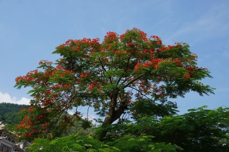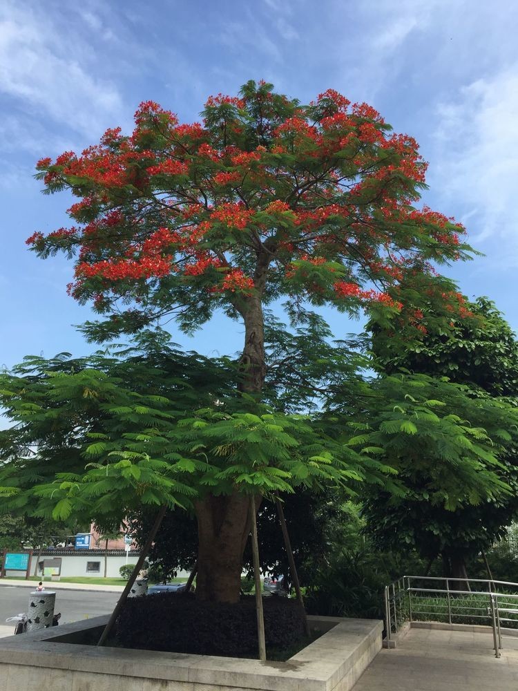 凤凰木盛开时,花似凤凰栖息枝头,引人驻足留连。