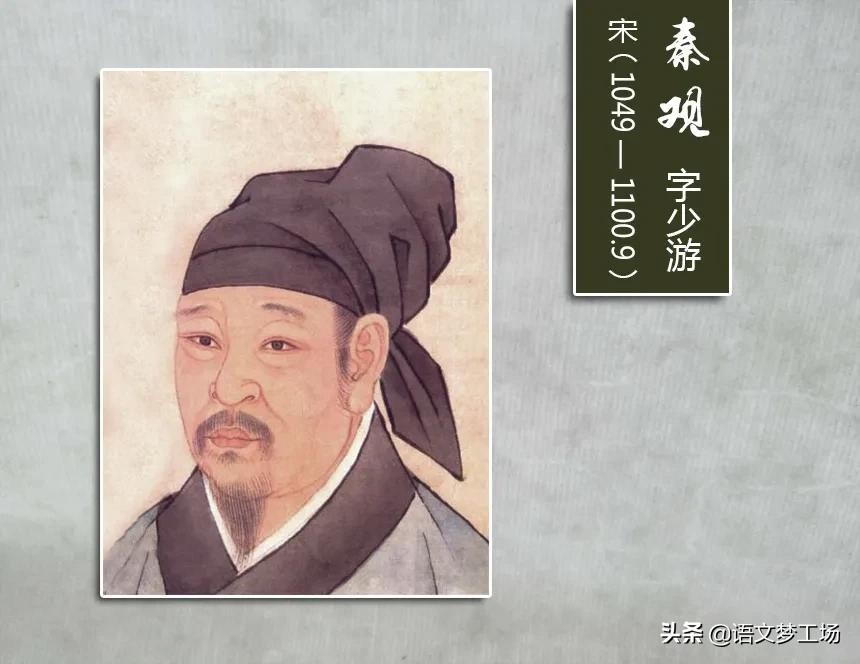 秦观(1049年—1100年9月17日),字少游,一字太虚,别号邗沟居士,高邮军武宁乡左厢里(今江苏省高邮市三垛镇少游村)人。妻子为徐文美。北宋婉约派词人,被尊为婉约派一代词宗,学者称为淮海居士。