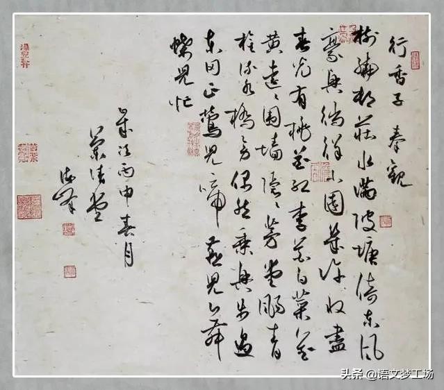 下片移步换形,从眼前的小园转向远处的茅堂小桥。“远远围墙,隐隐茅堂。飏青旗,流水桥傍。”远处是一带逶迤缭绕的围墙,墙内隐现出茅草覆顶的小屋,在小桥流水近旁,飘扬着乡村小酒店的青旗。这几句不但动静相间,风光如画,而且那隐现的茅堂和掩映的青旗又因其本身的富于含蕴而引起游人的遐想,自具一种吸引人的魅力。“偶然乘兴,步过东冈。”这两句叙事,插在前后的写景句子中间,使文情稍作顿挫,别具一种萧散自得的意趣。“正莺儿啼,燕儿舞,蝶儿忙。”这是步过东边的小山冈以后展现在眼前的另一派春光。和上片结尾写不同色彩的花儿不同,这三句写的是春天最活跃的三种虫鸟,以集中表现春的生命活力。词人用“啼”、“舞”、“忙”三个字准确地概括了三种虫鸟的特性,与上片结尾对映,进一步强化了生机无限的春光。
