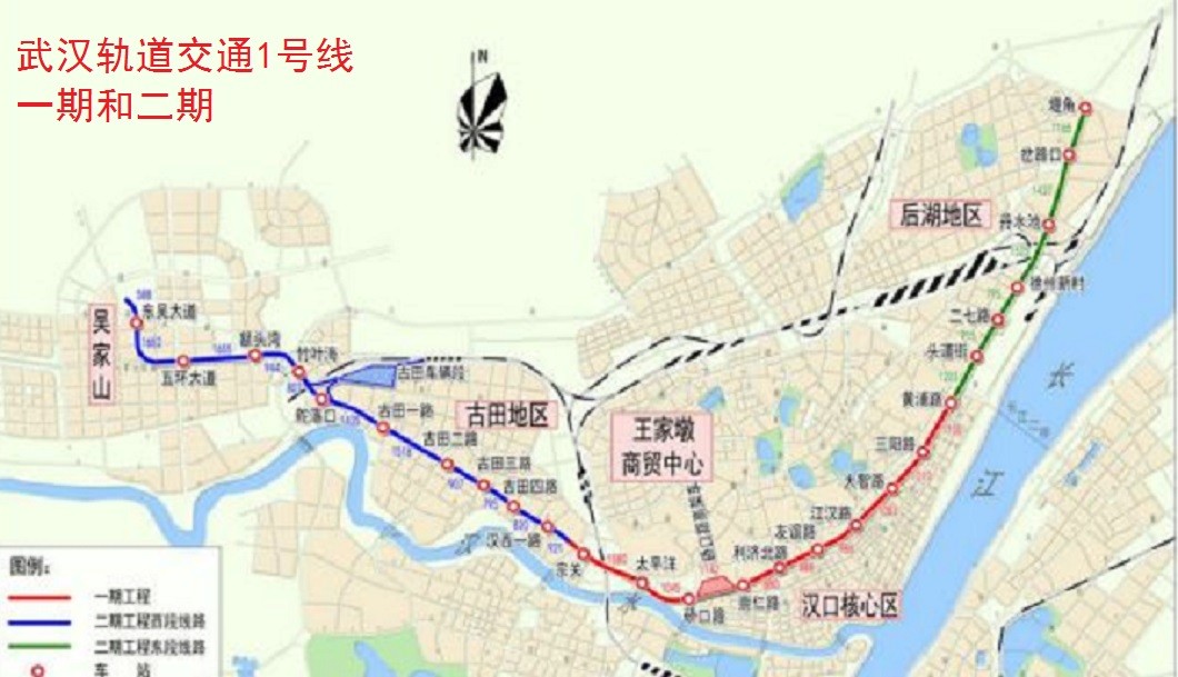 下面就是武汉轨道交通1号线一期和二期的情况。