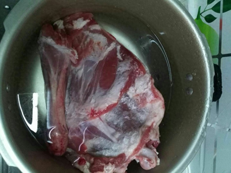第一步:羊腿洗净后凉水浸泡3个小时(泡出血水记得换水)