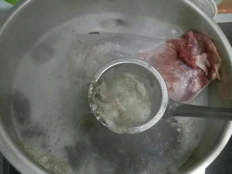 第二步:把羊腿焯下水,撇去浮沫