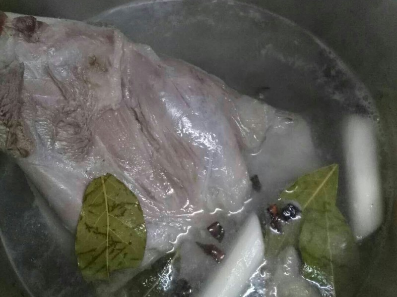 第四步:羊腿煮至8分熟就可以了
