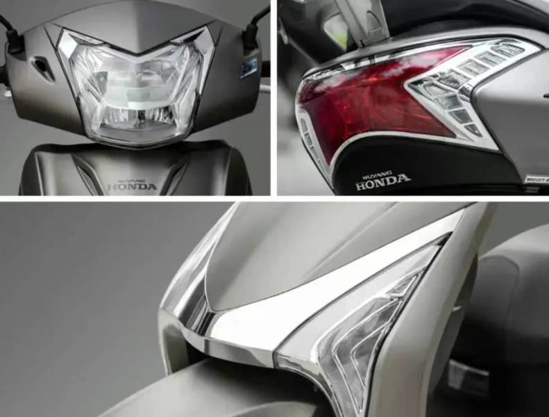 这款佳御110的外观设计非常独特,相比目前主流的踏板设计它显得更加大气,前脸依旧采用了本田一贯的家族化设计,一对炯炯有神的大灯搭配圆润的头灯设计,显得非常优雅,车身线条少了些许凌冽,多了几分柔和,有种独特的美感在其中,酒红色的车身配色很好的提升了整车的气质。