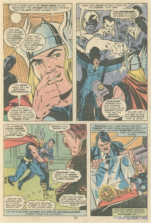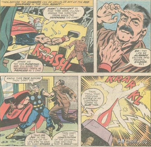 以上就是“雷神”托尔在二战时期的表现,他不但不是超级英雄,反倒因为一些原因,两次成为了反派,站在了纳粹一边,于美国队长等超级英雄战斗。