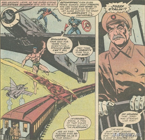 而这时美国队长/初代霹雳火/纳摩等侵袭组成员正在保护斯大林的专列。