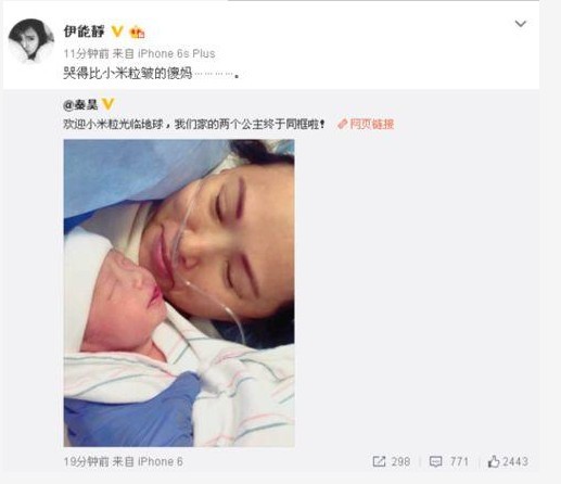 伊能静评论说:“哭得比小米粒皱的傻妈……”网友也纷纷送上祝福:“期待了好久 ,小公主终于来了,好感动~”“真心的祝愿宝宝健康的成长,你们家庭幸福美满。”