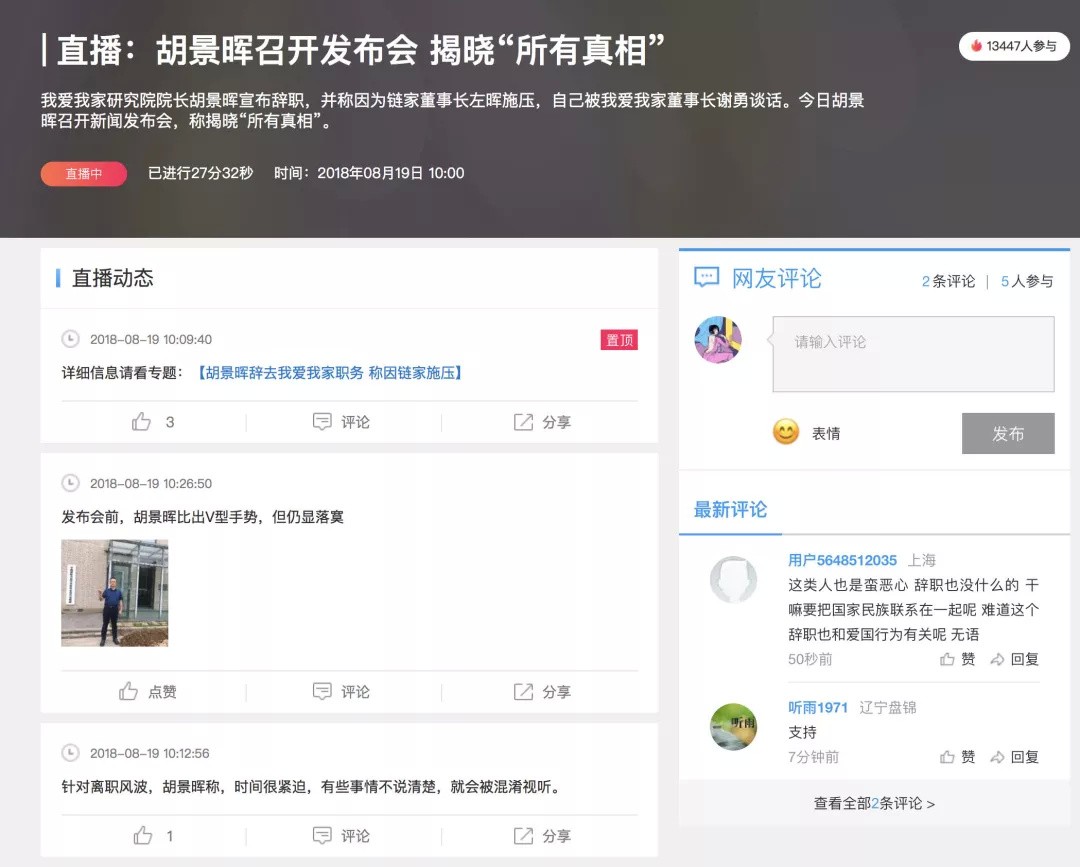 我爱我家副总胡景晖离职,开发布会称揭晓“所有真相”,搞事情?