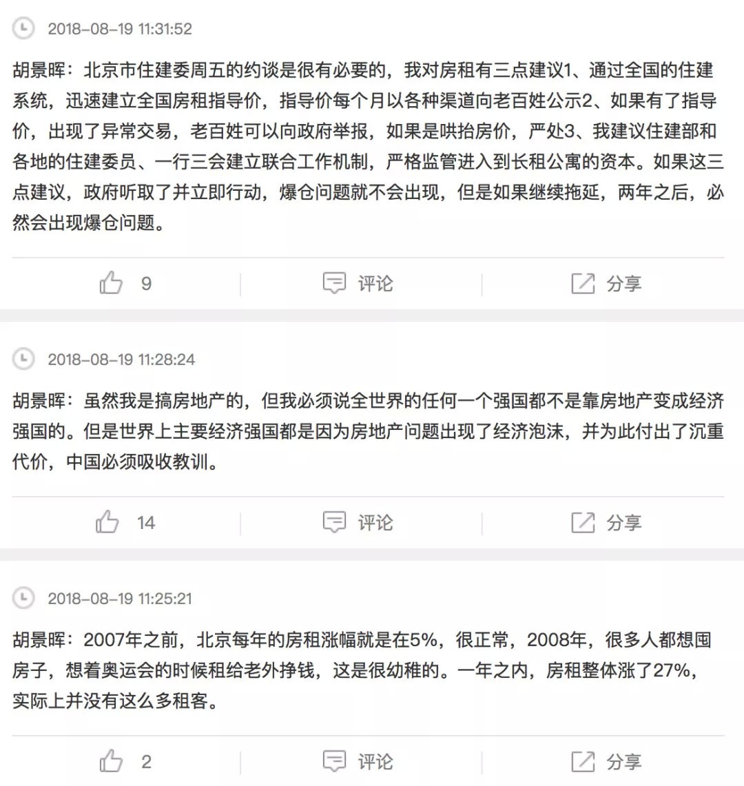 现在,在胡景晖看来,租房是一个民生问题,民生问题一定要谨慎,要避免出现各种风险,要合规合法,为老百姓负责。