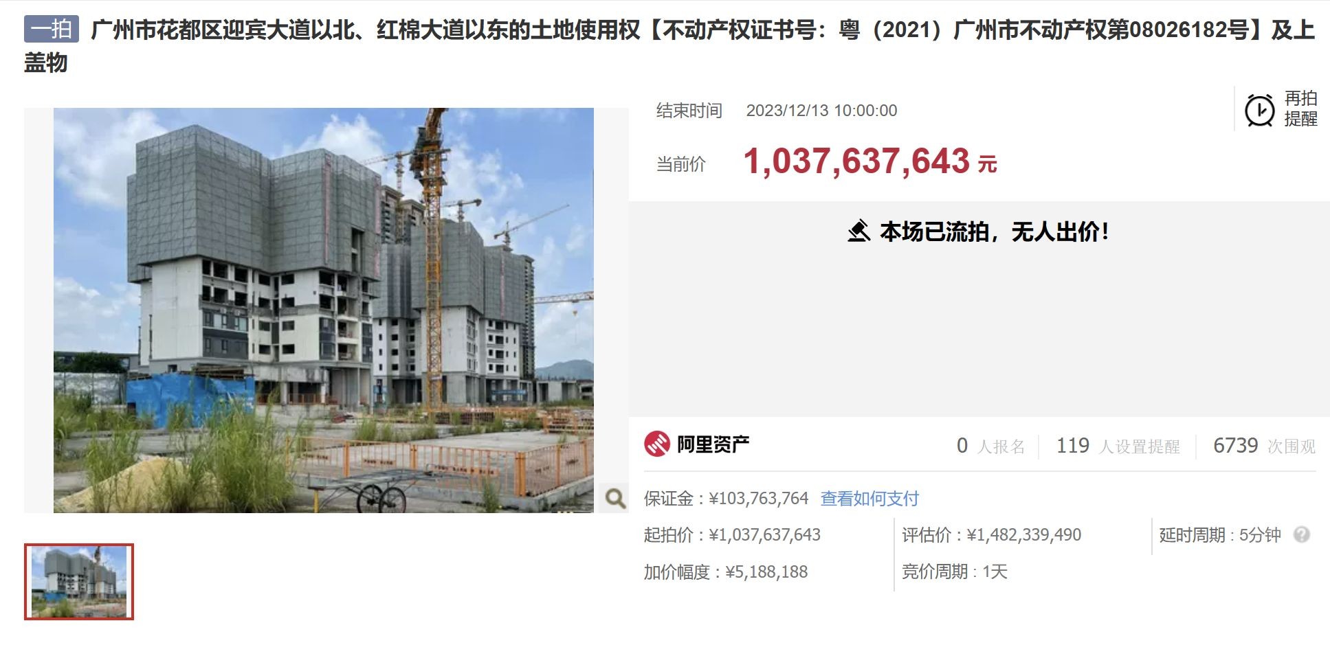最新信息显示,金科地产当前正在推进司法重整工作,希望通过市场化、法治化的方式化解自身经营风险。然而其将用于拍卖抵债的“百瑞宝盈854号”的后置抵押物,位于广州市花都区的金科博悦湾项目已于2023年12月13日流拍,无人出价。