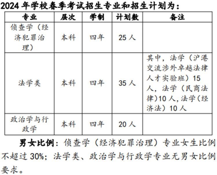 另外一所高分院校华东政法大学调整了侦查学(经济犯罪治理)、法学类的招生计划,招生总数保持不变。侦查学(经济犯罪治理)专业要求女生比例不超过30%,并有相关体检要求。