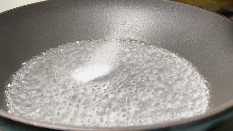 6. 烧一锅开水,加入食盐和植物油,给娃娃菜焯水