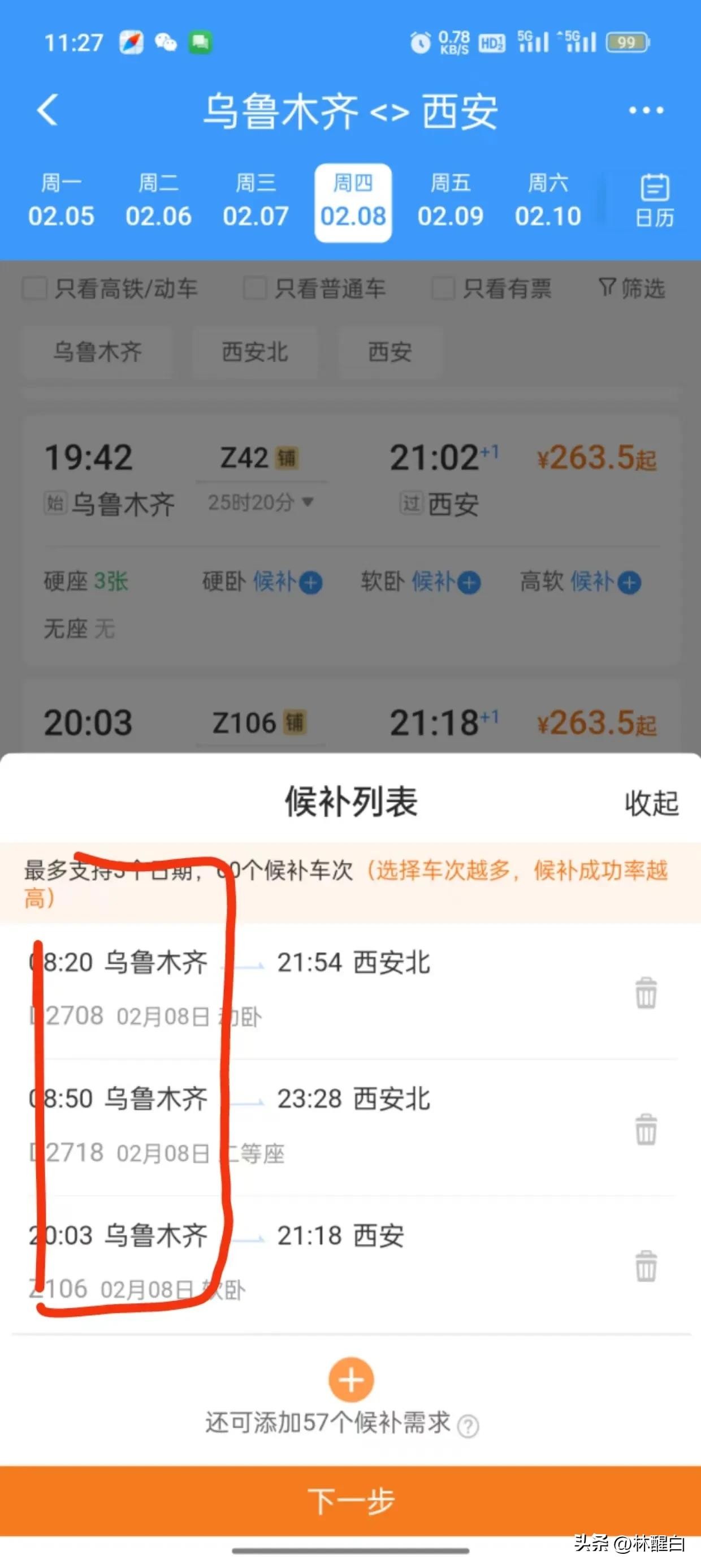 这个抢票已经试过了,1月25日我同事买乌鲁木齐到西安的2月8号的票,第一次没买到,立马加入候补。下单10分钟后就立马买到了。所以要利用时差,别人在懊恼没抢到票时立马会加入候补订单。这样成功率基本100%。
