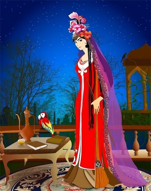 历史记载,阿曼尼莎汗出生于木卡姆艺人之家,自幼琴艺精湛,歌声优美。聪慧的她十几岁时就可以为木卡姆谱写诗歌。