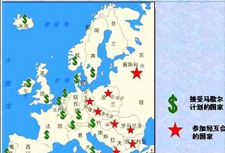 但是光镇压革命不行,西欧在二战中被打了个稀巴烂,老百姓吃不饱肚子,迟早还是要造反的。于是美国国务卿马歇尔跑到哈佛大学,也发表了一通慷慨激昂的演讲,说我们得帮欧洲重建啥的,这就是“马歇尔计划”。不过好像怕刚满一周岁的特朗普反对掏钱,一个本国记者都没敢请……