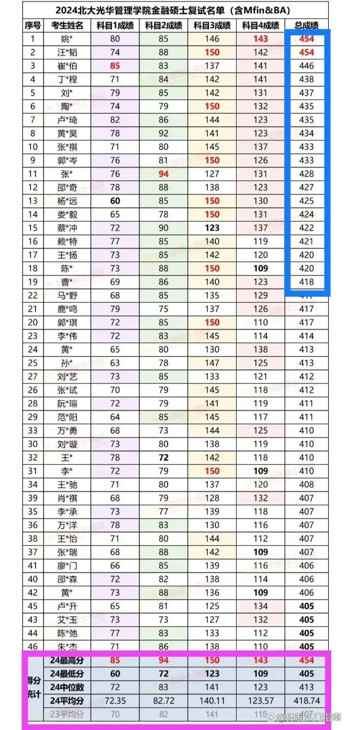 2024北大光华管理学院复试名单:最高454,平均分418,最低分405