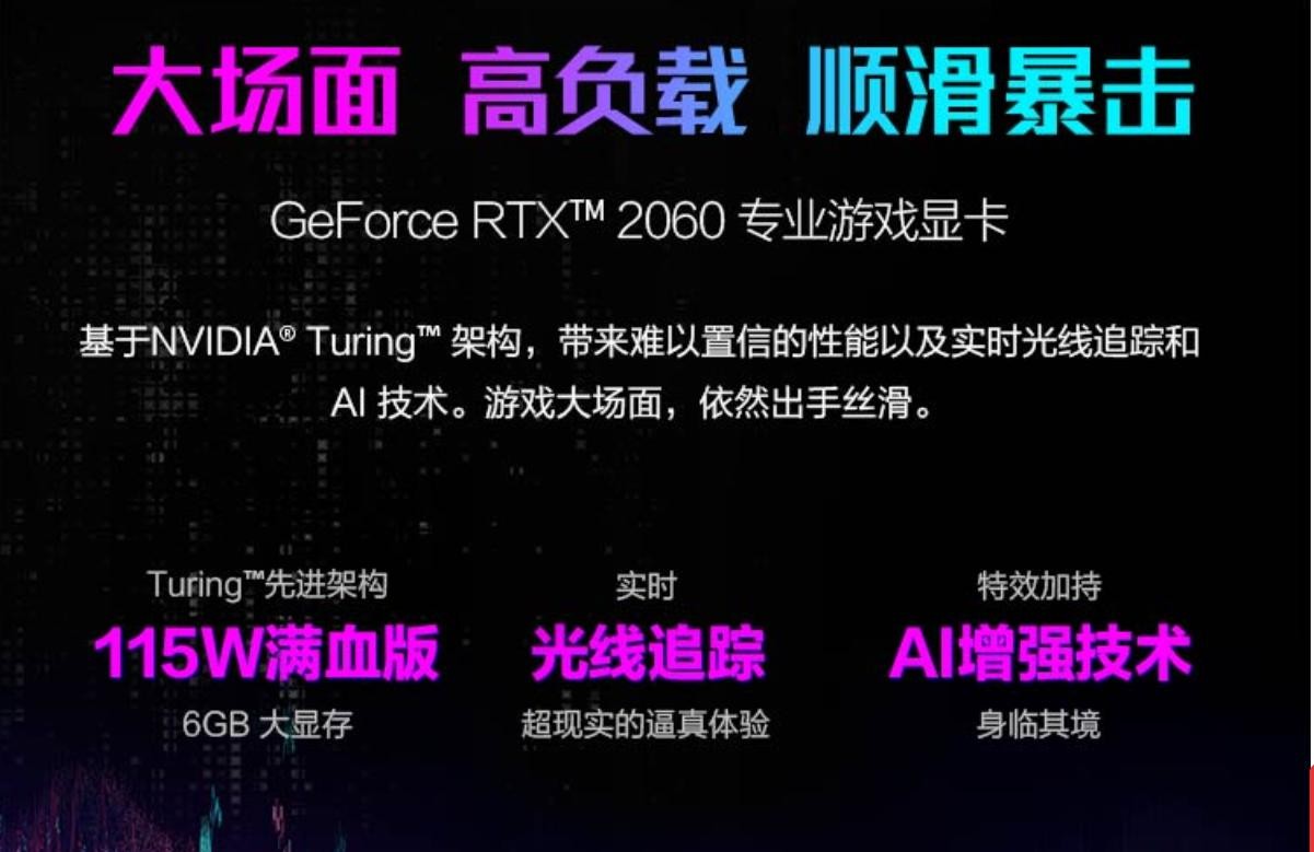ROG魔霸新锐搭载满血版NVIDIA RTX 2060显卡是它的一大亮点!对于传统游戏本为了降低功耗从而限制显卡速度来说,ROG魔霸新锐显卡速度不受限,同时基于NVIDIA Turing架构,将实时光线追踪技术引入游戏,优质的光线渲染带来准确的光影效果,可以让游戏场景更真实、更逼真,让玩家体验真正的“沉浸感”。