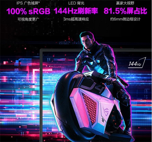 屏幕方面,ROG魔霸新锐搭载了一块15.6寸的IPS专业电竞屏,边框宽度约6mm,屏占比高达81.5%,支持144Hz的高刷率,色域覆盖100% sRGB,让玩家在拥有顺滑流畅、颜色饱满细腻的画面同时,还能拥有更开阔的视野,玩游戏时仿佛身临其境。