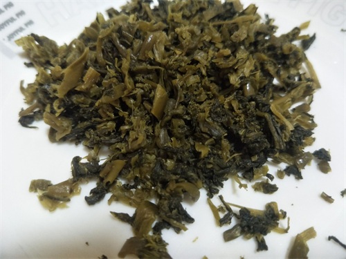 从市场上买来新鲜的芥菜先晾晒(有的是先将其洗净),然后至稍干瘪时,再水洗,切碎(比较细碎一些),摊晒,风干到柔韧的样子,但必须含有一定的潮度。再准备一只可以揉菜的盆子,把菜放进盆子里,放盐、少量辣椒等,用手揉腌。同时,需准备一只0.5——1公升容量的玻璃瓶,最好口大一些,把揉腌的菜放入,一直放到瓶口为止,让容器没有空气,用木棍塞打,至十分紧密。最后在瓶口上,放蓑叶一类的草叶填满塞紧,再用瓶盖用力旋紧,不能有透风泄气。